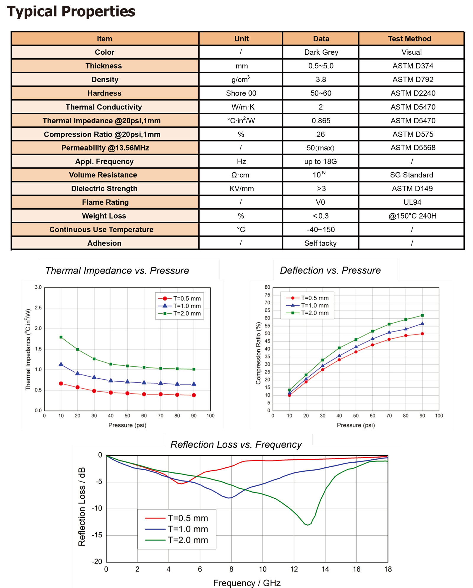TM TCA系列導(dǎo)熱吸收材料是一種填充陶瓷和鐵氧體顆粒的硅基復(fù)合材料。設(shè)計(jì)用于吸收電磁噪聲(諧振腔、串?dāng)_和耦合)并填充熱界面之間的間隙。TCA系列吸收材料具有自粘性,組裝時(shí)不需要任何膠帶。" />